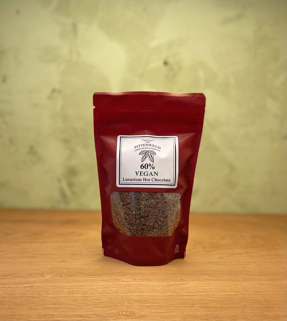 Luxurious 60% Dairy Free dark hot chocolate, handmade by the Pittenweem Chocolate Co.