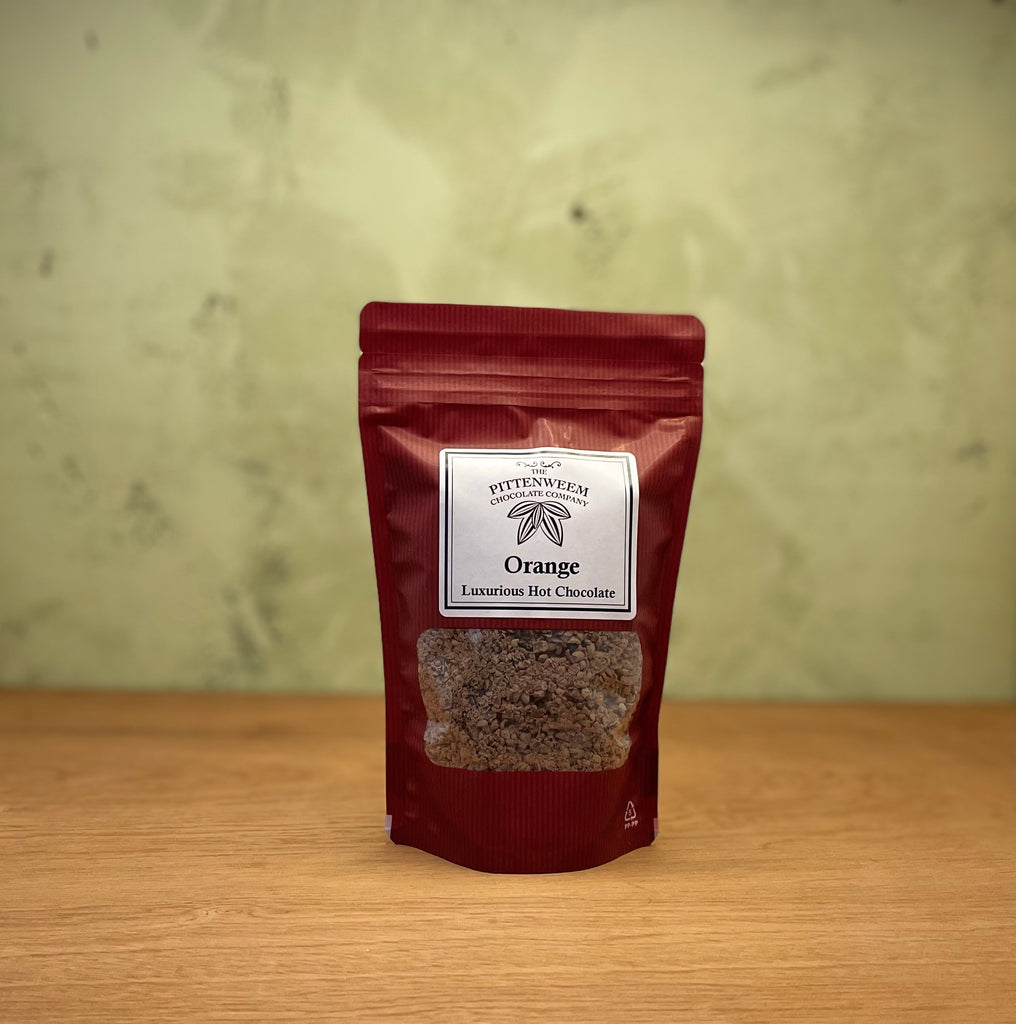 Luxurious Orange hot chocolate, handmade by the Pittenweem Chocolate Co.
