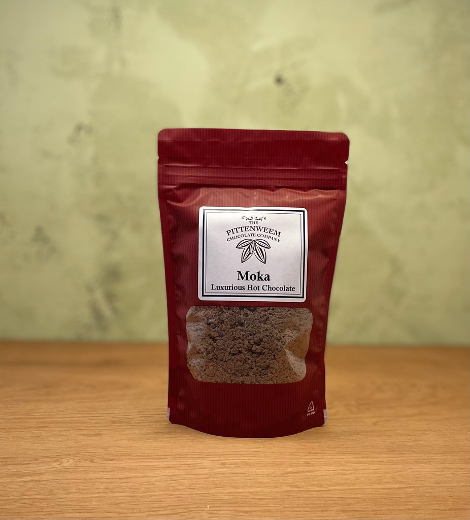 Luxurious moka milk hot chocolate, handmade by the Pittenweem Chocolate Co.