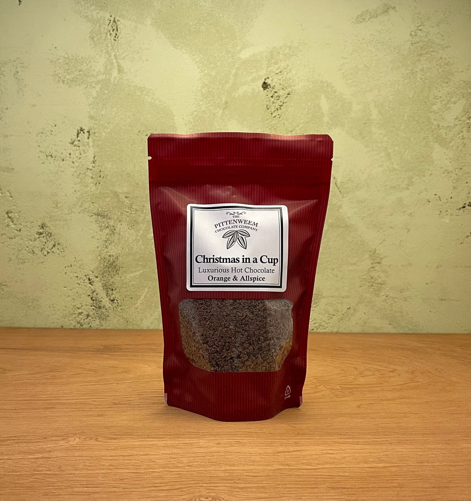Also known as 'Christmas in a Cup' – our luxurious orange & allspice hot chocolate, handmade by the Pittenweem Chocolate Co.