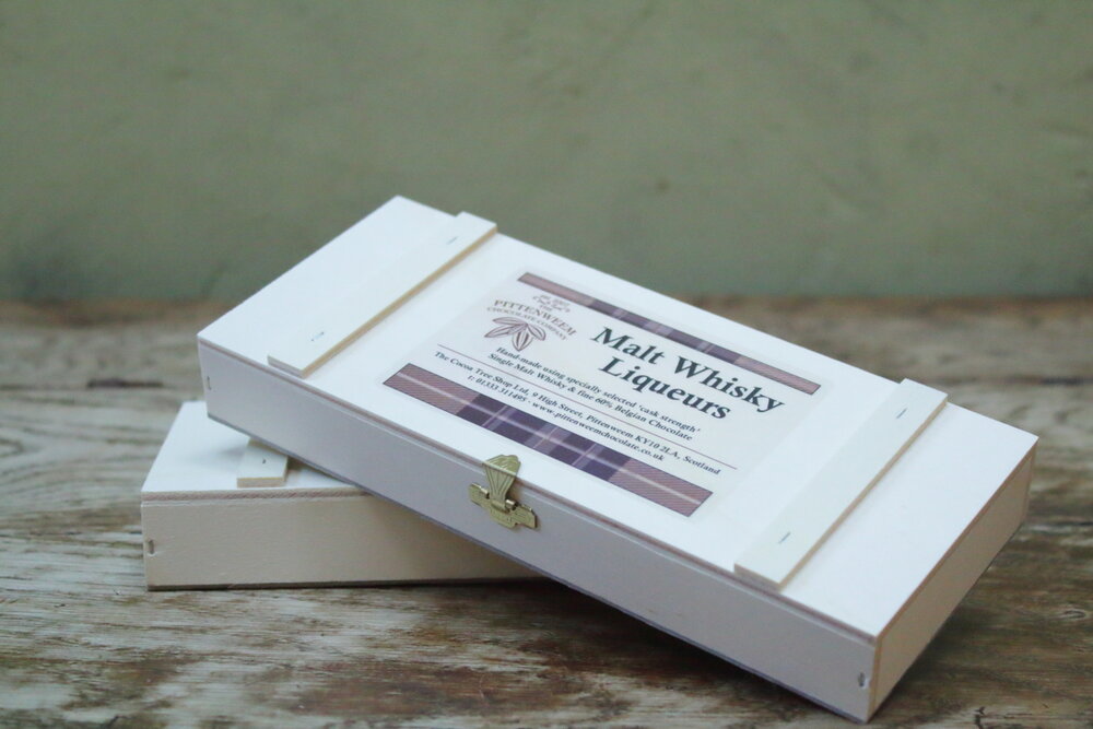 Perfect artisan gift for the malt whisky connoisseur – an exclusive collaboration between the Pittenweem Chocolate Co. and our Belgian chocolate makers.